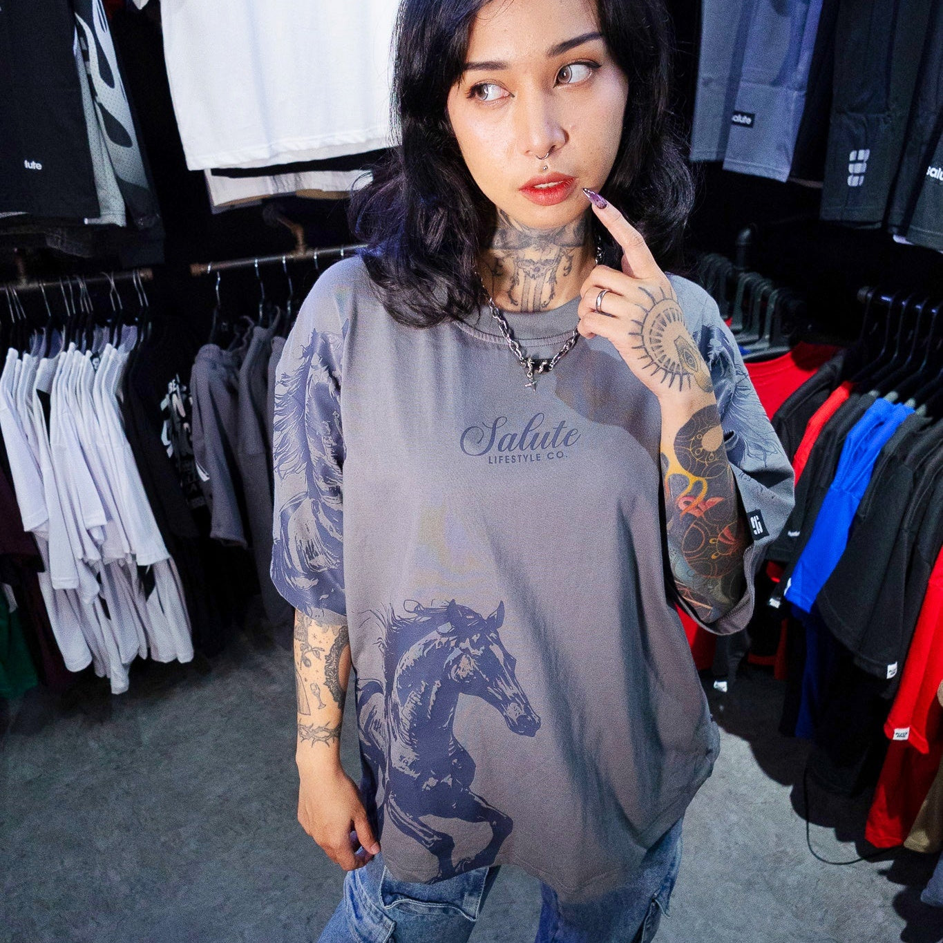 Featuring a bold horse graphic that stands for freedom and power, this fit reminds you that moving in silence always speaks the loudest.